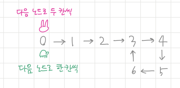 - ์ฌ์ดํด์ด ์๋ค : ๋น ๋ฅธ ํฌ์ธํฐ๊ฐ ๋จผ์ ์ฐ๊ฒฐ ๋ฆฌ์คํธ ๋์ ๋์ฐฉํ์ ๊ฒฝ์ฐ