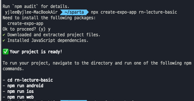 ํ๋ก์ ํธ๋ฅผ ์งํํ ๊ฒฝ๋ก๋ก ์ด๋ํด์ ๋ ๋ฒ์งธ ์ค์ธ create-expo-app ์ ์คํํ๋ค.