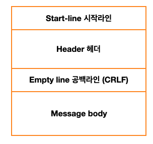 HTTP์ ๋ฉ์ธ์ง ๊ตฌ์กฐ๋ ์๋์ ๊ฐ์ด ๊ตฌ์ฑ๋์ด ์๋ค.